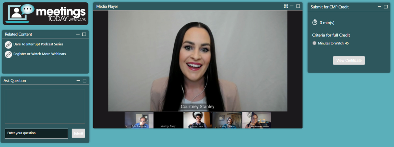 Planners will register and join in for a 45-minute program that will consist of three separate