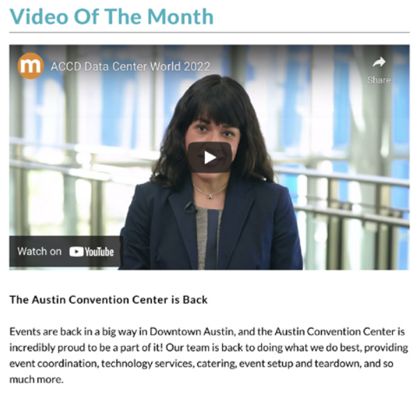 Put your video message in front of your best meeting planner prospects with Meetings Today. Show planners the benefits of your destination or property through your creative video message. This custom eNewsletter program utilizes an integrated support package including article page, YouTube and Google retargeting, eNewsletter and social media promotions to help drive planners to your video.